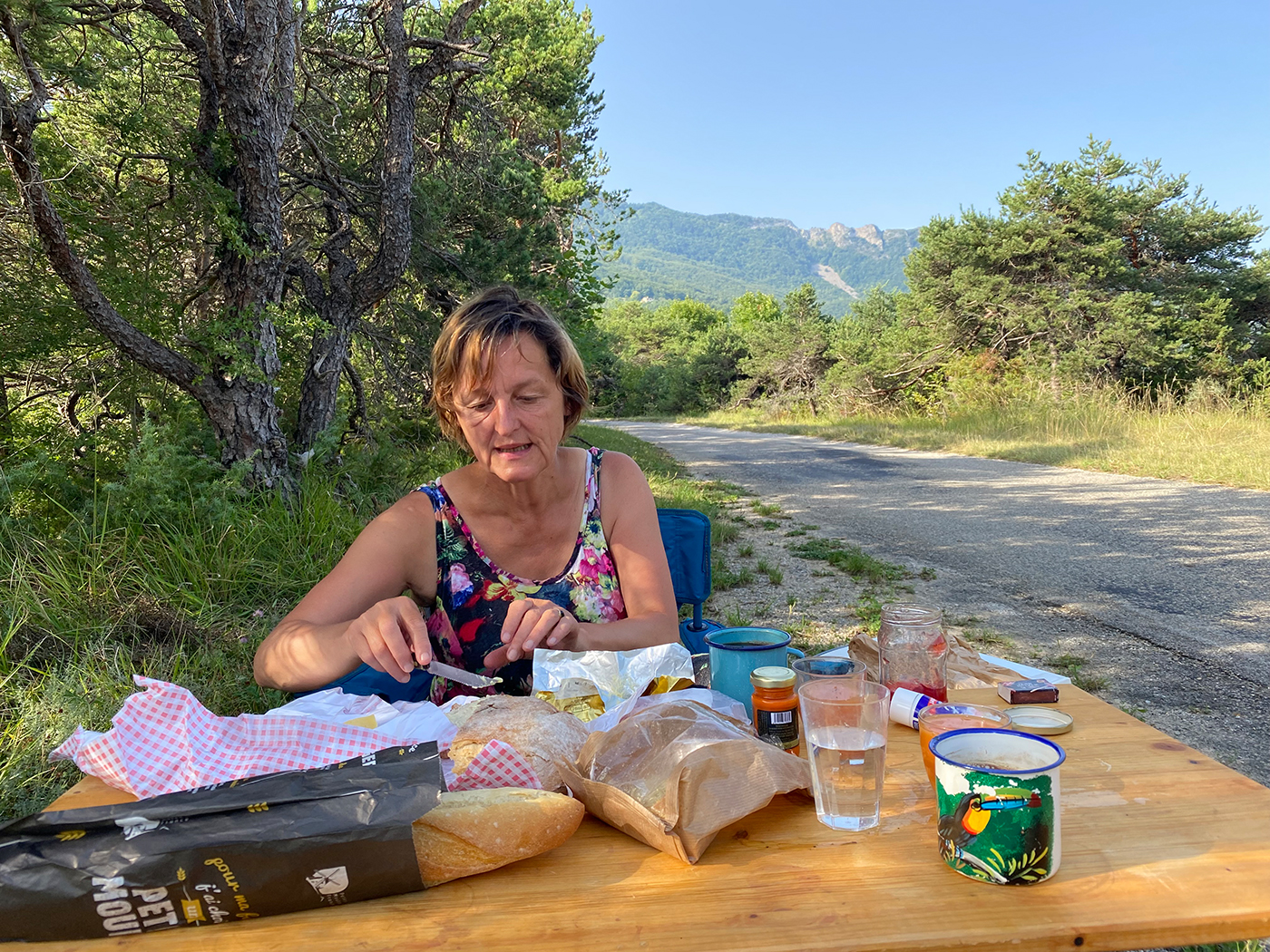Und über allem thronen die Trois Becs, auf deren mittleren ich gestern thronte. Eine ungewöhnliche Landschaft! Unbegreiflich, dass wir das in 40 Jahren nie erkundet haben …. auch wenn Buis-les-Baronnies natürlich auch schön ist.