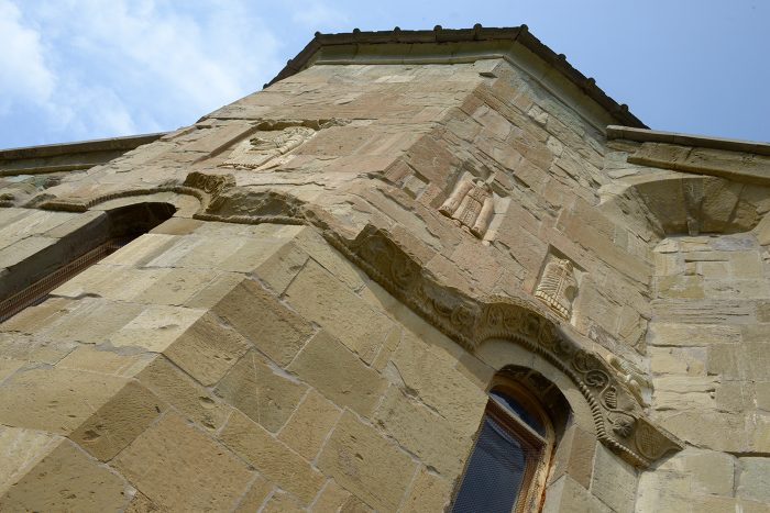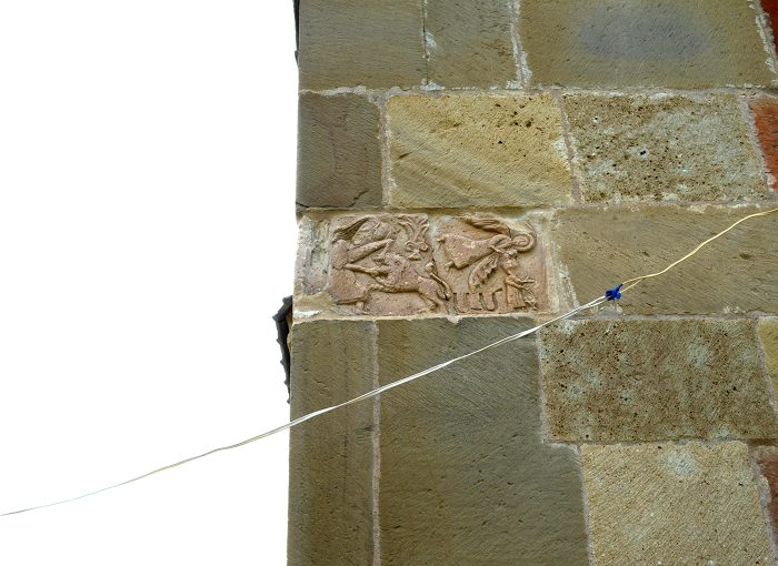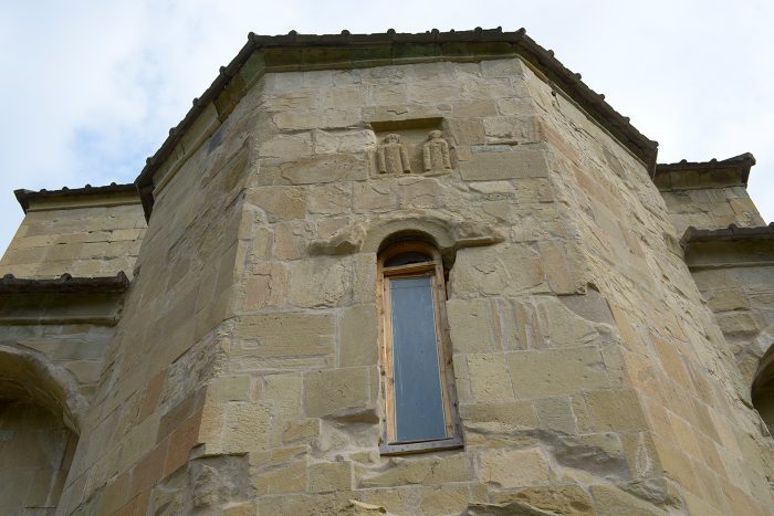 Das Gemäuer ist schlicht und man muss nach den steinmetzlichen Kunstwerken in der Tat mit einer Drohne oder einem Teleobjektiv Ausschau halten.