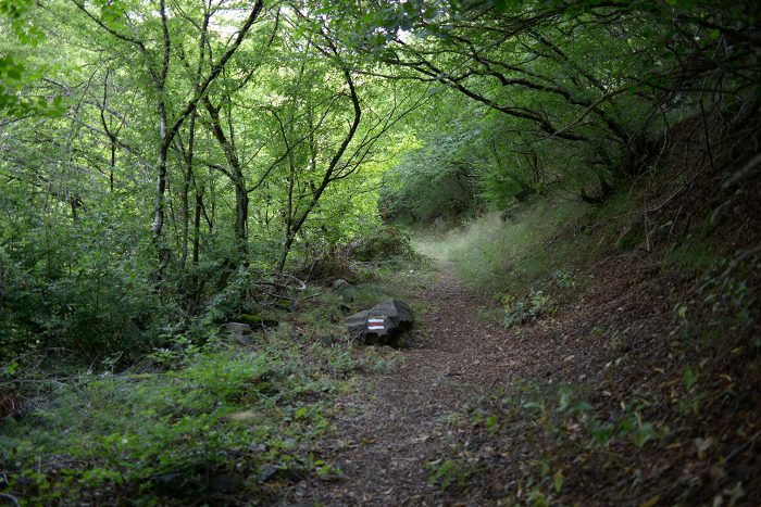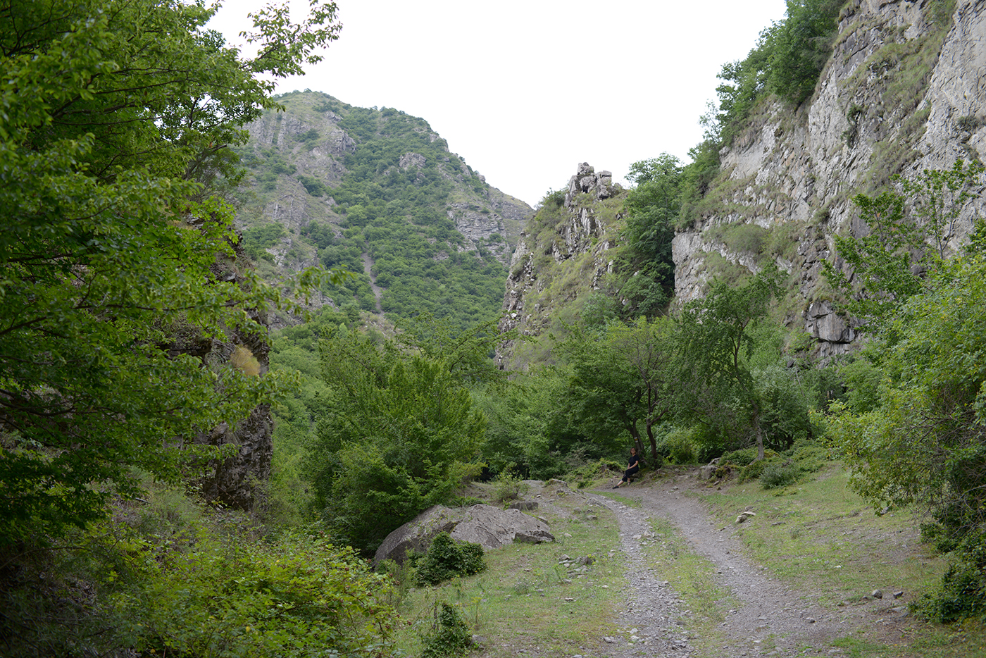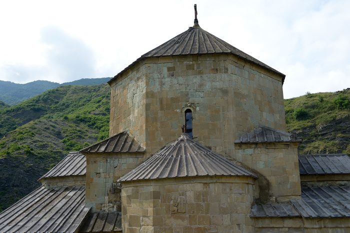 Vor uns drohen die Berge und der tiefe, dunkle Wald. Aber zunächst bietet das Kirchlein Didi Ateni Schutz vor übermäßiger Anstrengung an.