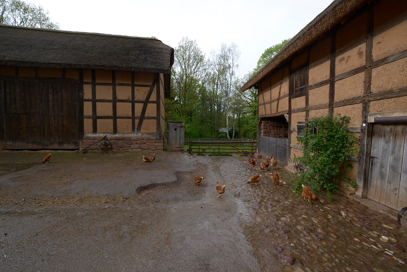 Und der Hof mit den Hühnern wirkt wie ein Gemälde von Pieter Bruegel, dem Älteren – oder wie ein Wimmelbild von Ali Mitgutsch.