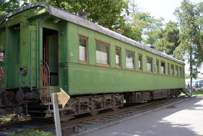 Und nun sind wir hier am anderen Ende der Welt und sehen den Waggon, mit dem der Diktator 1945 nach Potsdam reiste, um die Nachkriegsordnung Deutschlands zu entscheiden.
