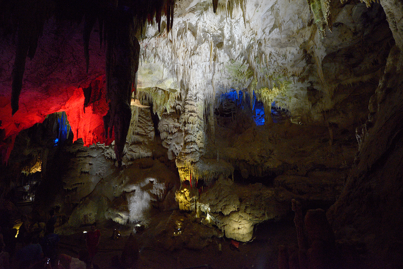 Ich finde auch die Farbeffekte überflüssig, denn die Tropfsteine wäre in ihrer natürlichen Farbe viel beeindruckender.