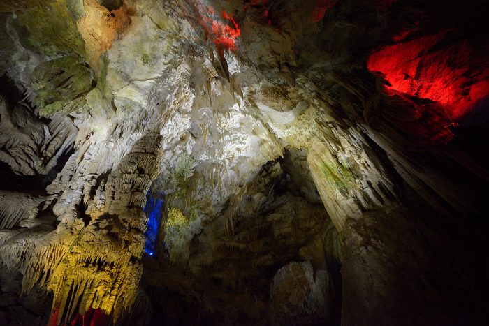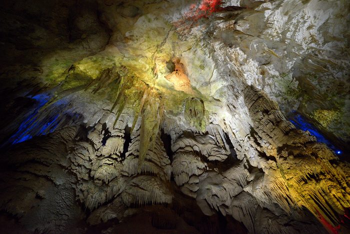 Die Prometheus-Höhle bei Kutaissi ist 11 km lang, wobei man nur etwa 1,400 m begehen kann.